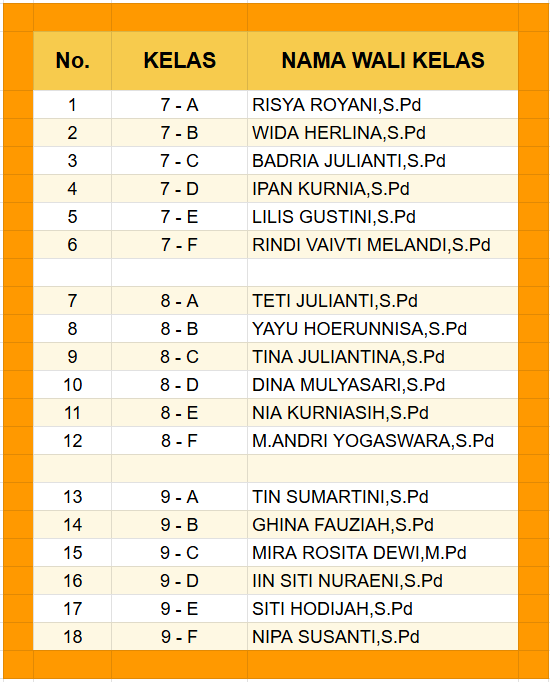 16NIA KURNIASIH,S.Pd17BAHASA INGGRIS8A - 8FWALI KELAS 8ELihat Jadwal